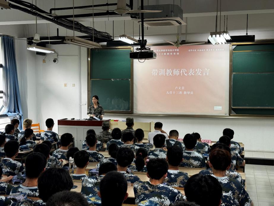 学生代表韩依蓬代表参训学生分享了他对军训的认识和期望。十三连指导员、新生辅导员卢文芸代表参训教师发言,介绍了军训日程安排。