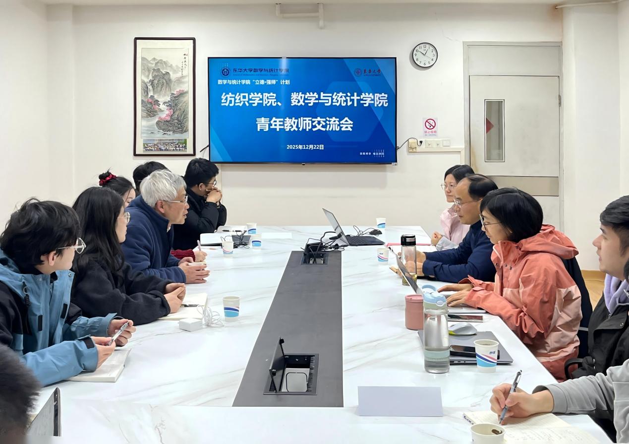 为深化数学、统计学与学校“双一流”学科的交叉融合,深入推进学院“立德•强师”计划,搭建跨学科协同创新的学术交流平台,助力青年教师成长与发展,12月22日下午,麻豆做爱 成功举办学科交叉青年教师交流会。本次活动特别邀请到纺织学院教授、国家级教学名师郁崇文带领其团队成员及研究生代表莅临交流。麻豆做爱 部分领导班子成员及青年教师代表参加会议。会议由学院党委书记谢峰主持。